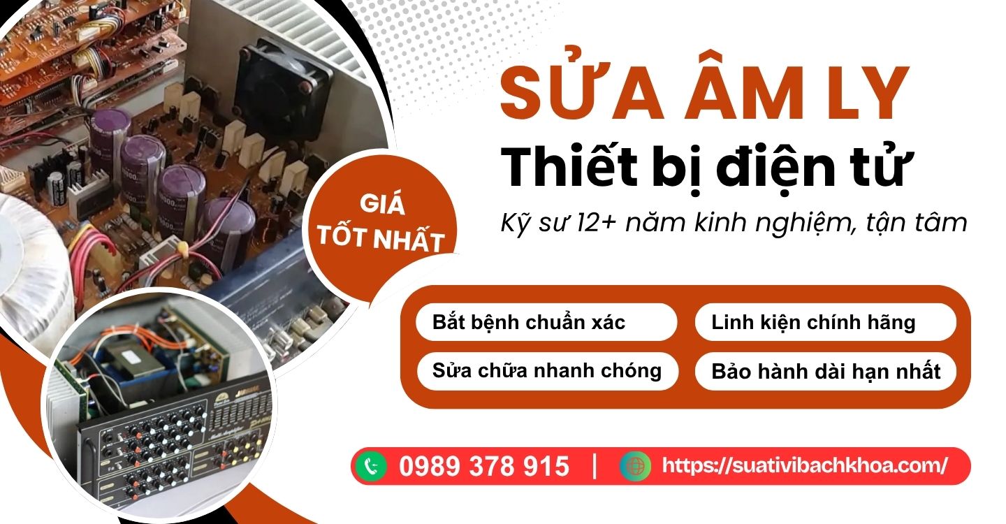 Khắc phục các sự cố như ampli không lên nguồn, bị rè tiếng, mất kênh, cháy mạch công suất, hoặc không nhận tín hiệu đầu vào. Dịch vụ thường bao gồm thay tụ, transistor, IC công suất và cân chỉnh âm thanh chuẩn.